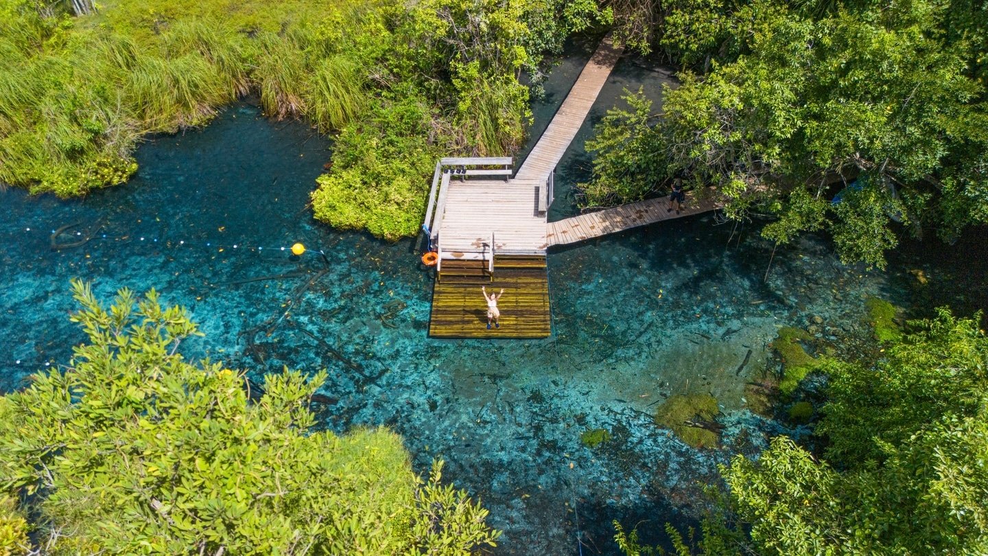 Um dos destaques do passeio é o mergulho na nascente do Rio Chapena, que abriga uma caverna submersa de profundidade ainda desconhecida. Considerada uma das nascentes mais cristalinas de Bonito, é um local de beleza ímpar.